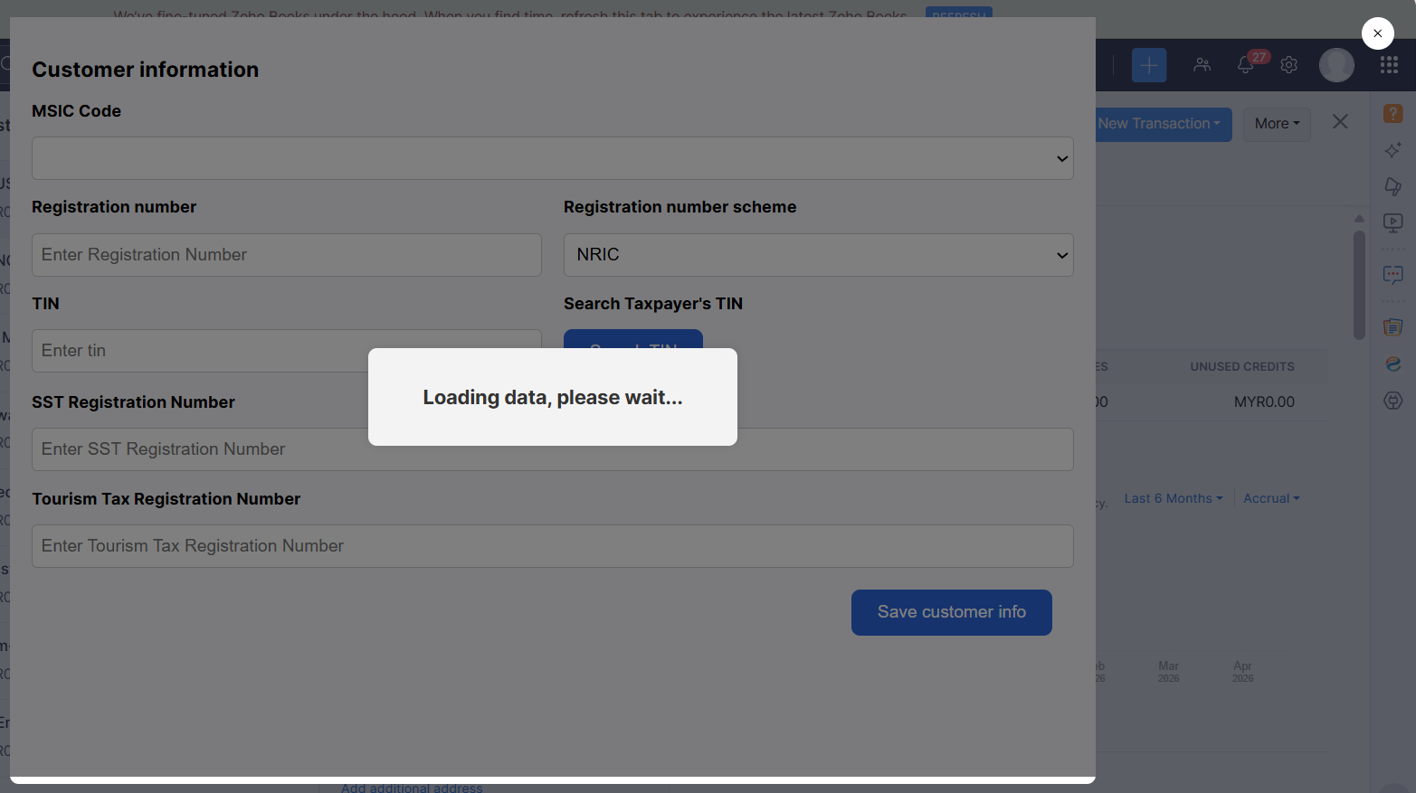Error with customer data (TIN and BRN )
