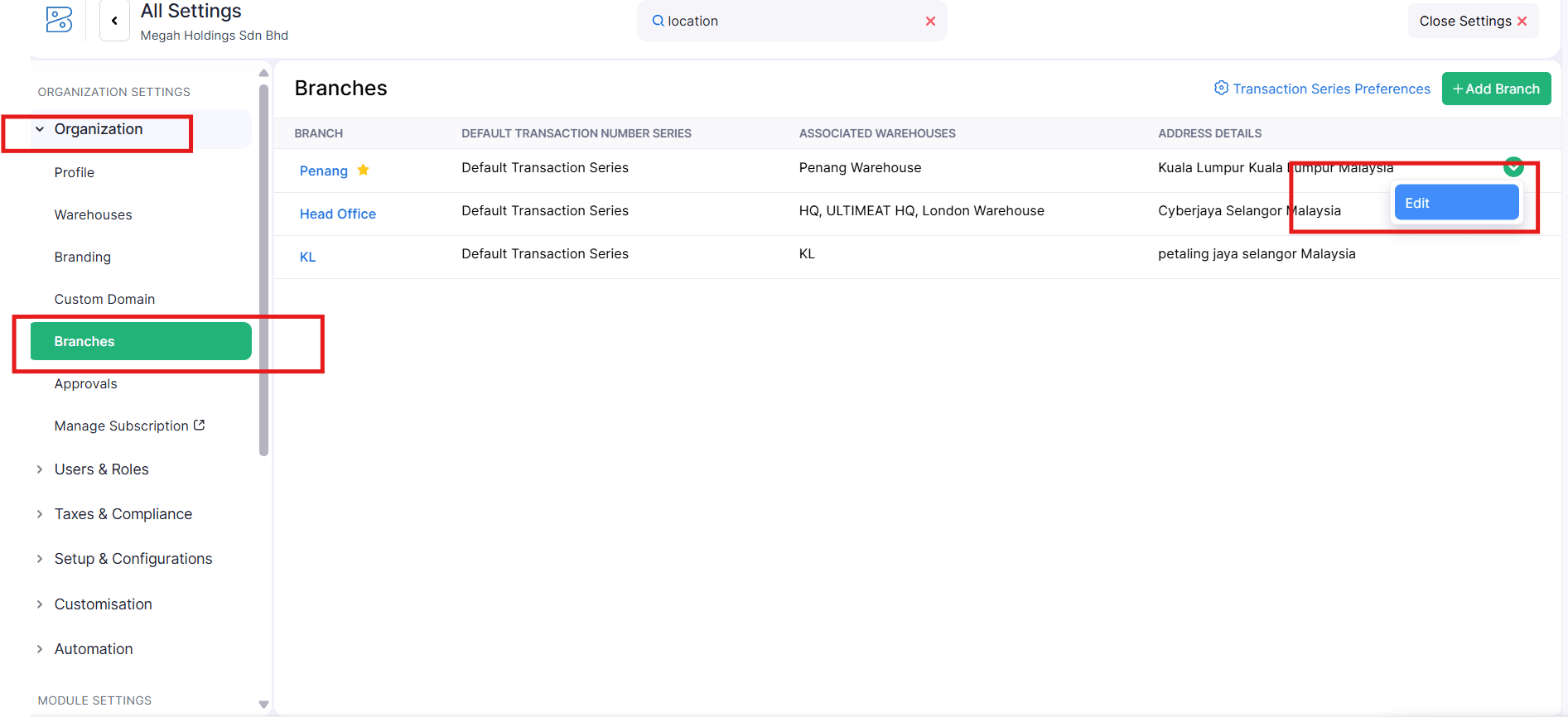 Organization Profile (single branch companies) ( settings > organization > profile)