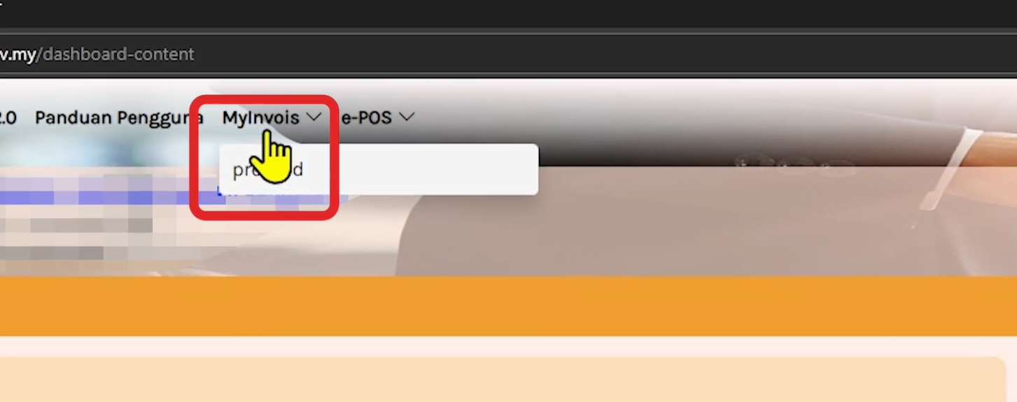 - Navigate to the "MyInvois Menu" on the menu, and if you see "Preprod" have access to the sandbox account.